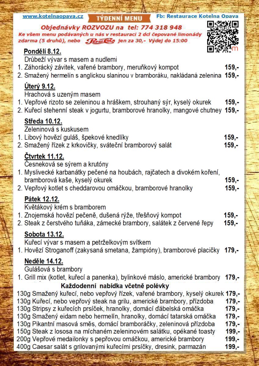 Polévka jeke všem jídlům včetně každodenní nabídky v ceně